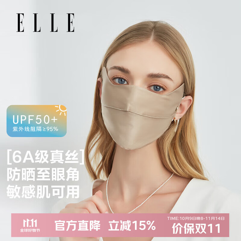 ELLE【100%真丝】防晒口罩女防晒护眼角面罩防紫外线桑蚕丝口罩
