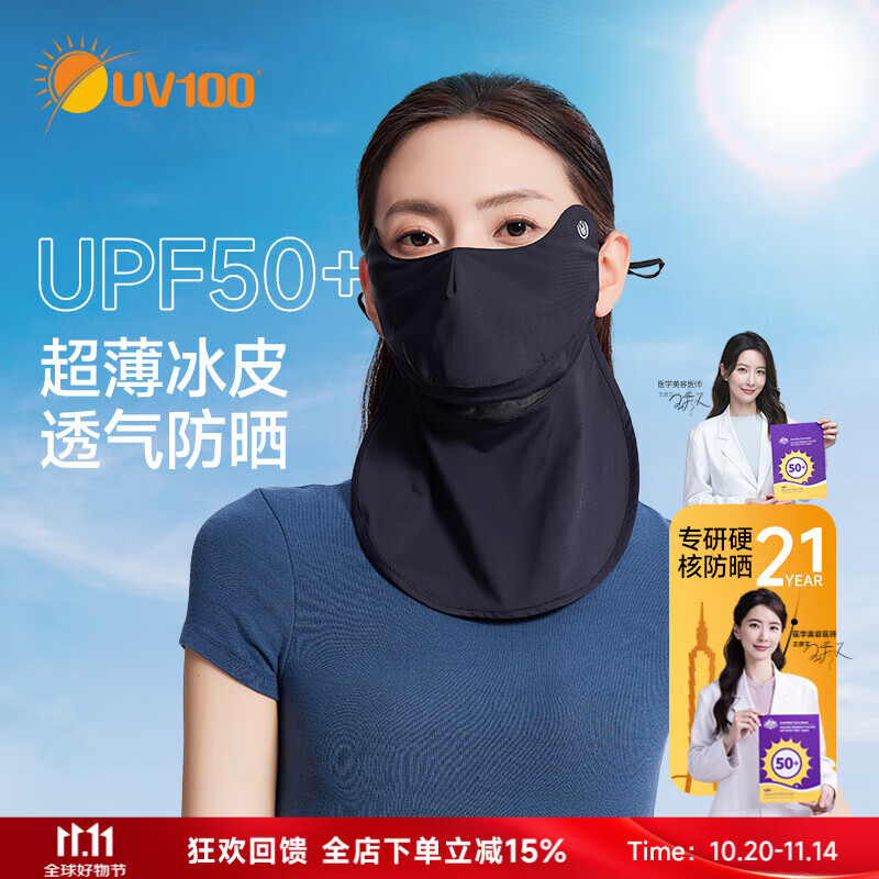 UV100台湾防晒面罩夏季新款防紫外线骑行护颈遮阳防晒口罩24503极简灰