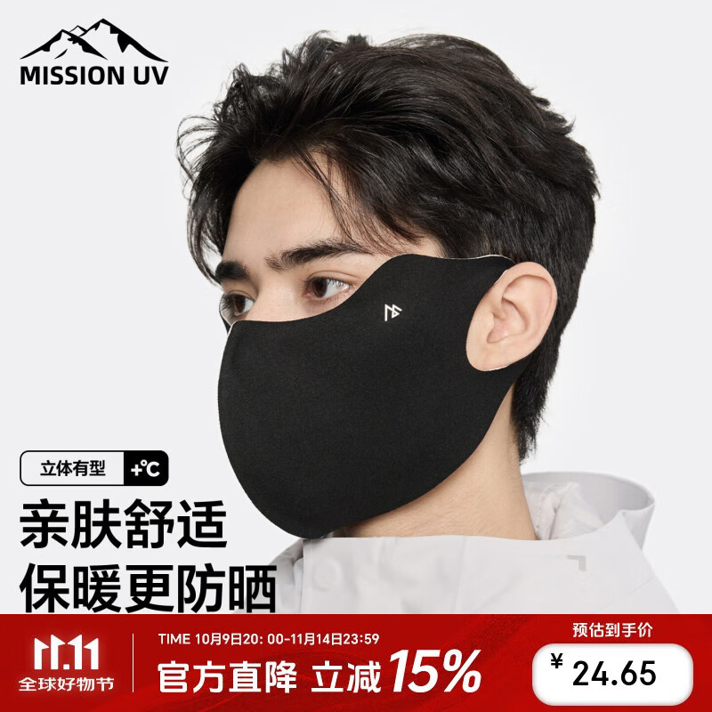 MISSION UV护眼角保暖防晒口罩男冬季男士防风防寒口罩冬天骑车骑行护脸面罩