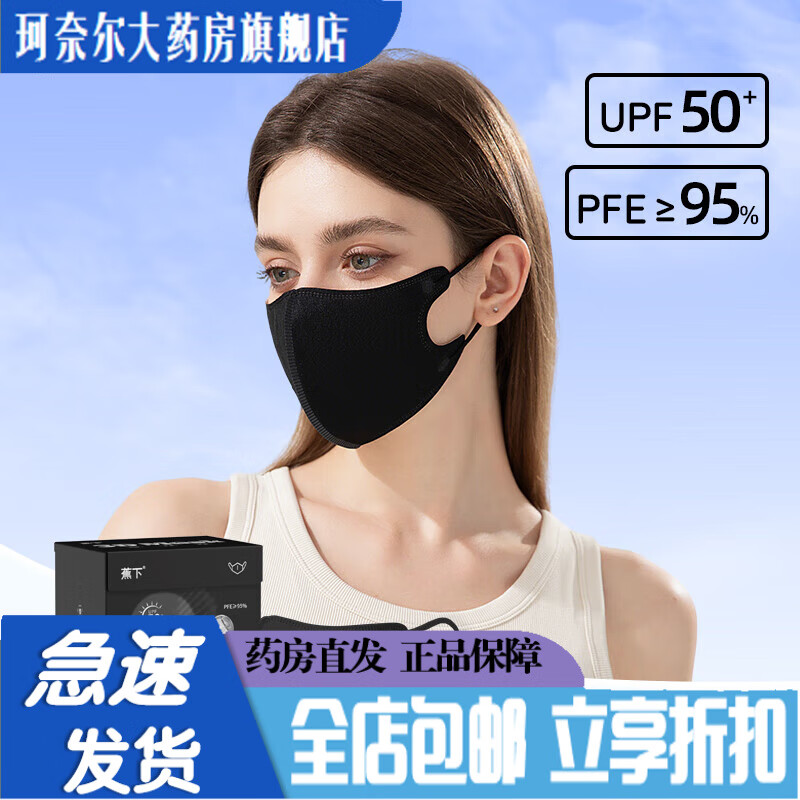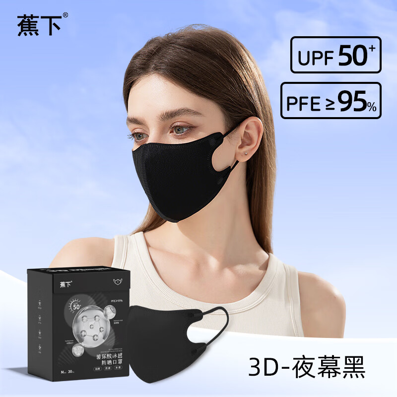 防晒口罩一次性 玻尿酸小冰皮蕉下冰感防晒口罩一次性UPF50+薄款3 防晒UPF50+夜幕黑玻尿款 M(中码)12.8x12厘米