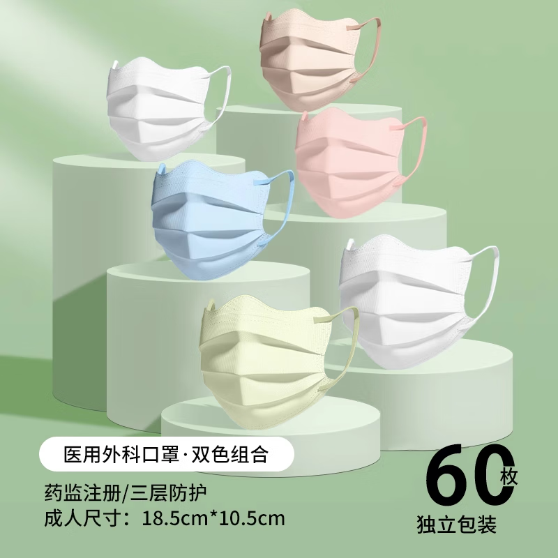 外科口罩一次性透气女高颜值独立包装防晒 六色装[次抛防晒|透气角]60只独