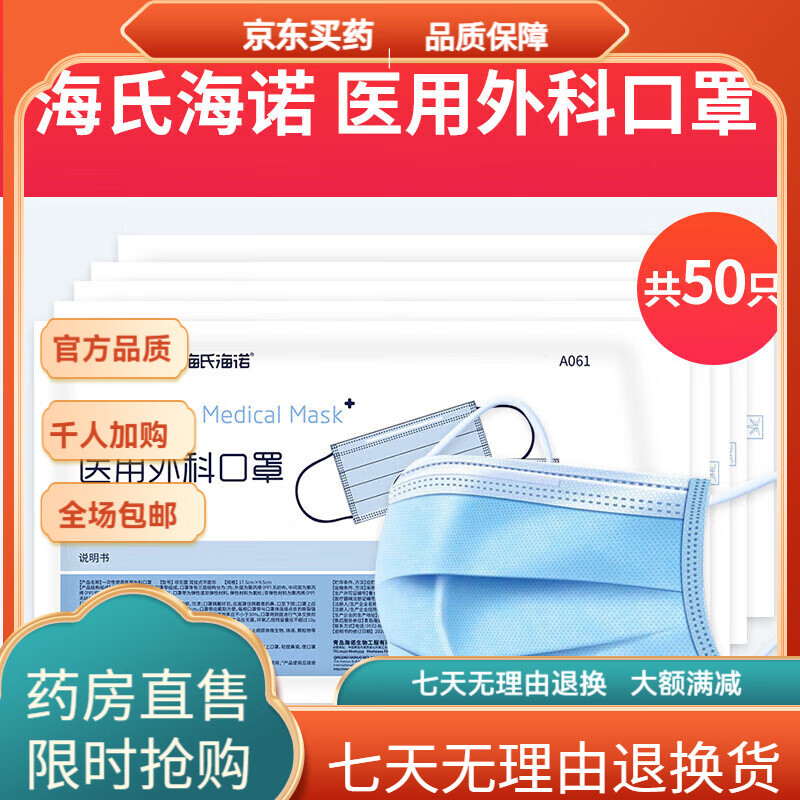 海氏海诺口罩口罩一次性外科口罩防晒薄款 外科口罩50只