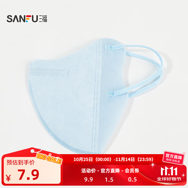 三福立体防晒口罩10片 生活日用创意家居次抛一次性用品 843534 蓝 10个