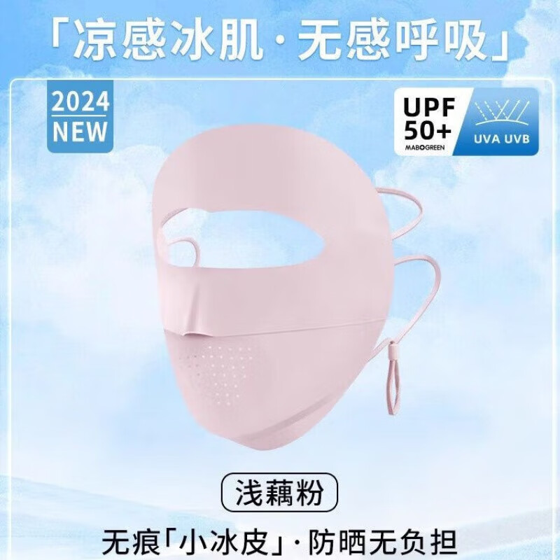 |【精选】防晒面罩遮脸夏季冰丝女透气防护遮全脸口罩遮阳面罩 全脸防晒防风【粉色】 1个