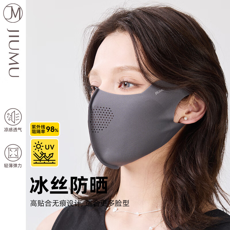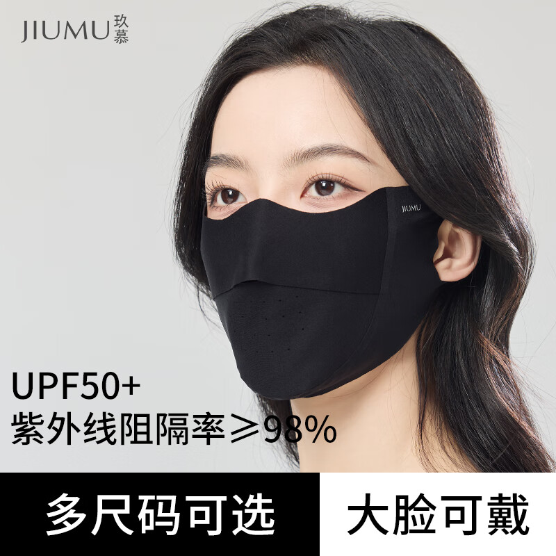 玖慕(JIUMU)冰丝防晒口罩男女士夏季防紫外线遮阳骑行立体护眼角全脸防晒面罩