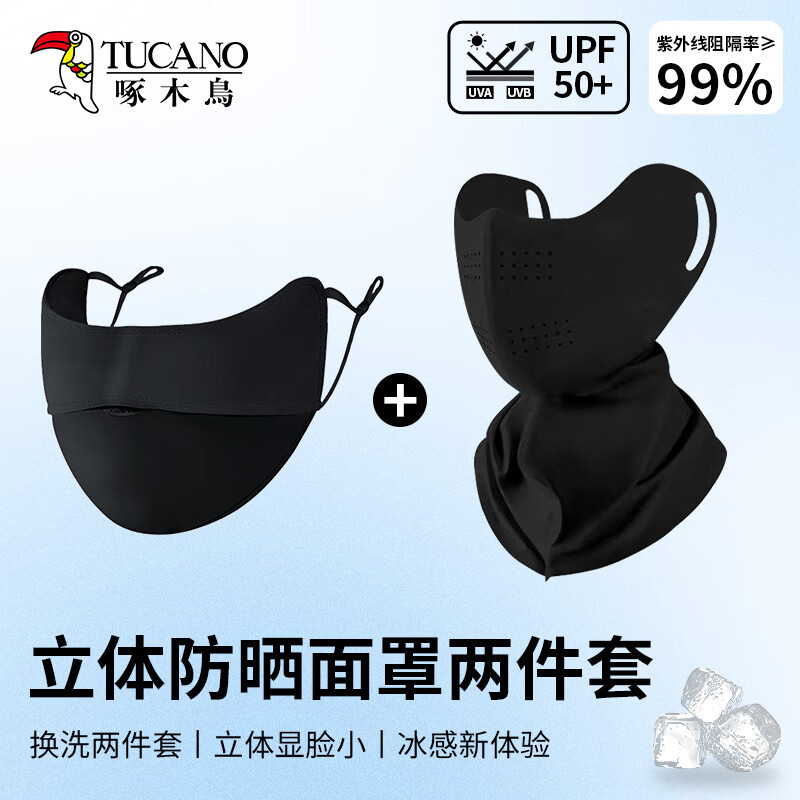 啄木鸟凉感防晒口罩脸基尼女立体透气遮全脸脖颈防紫外线骑行防晒面罩男