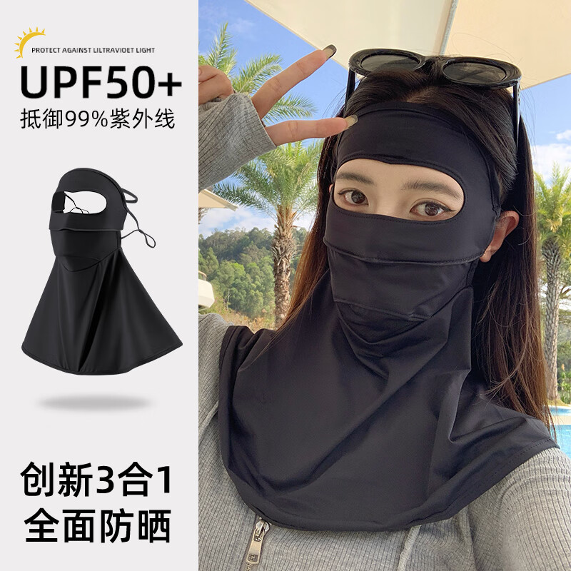 目丸防晒面罩全脸防紫外线遮阳女冰丝黑胶帽子一体护颈脸基尼骑行口罩