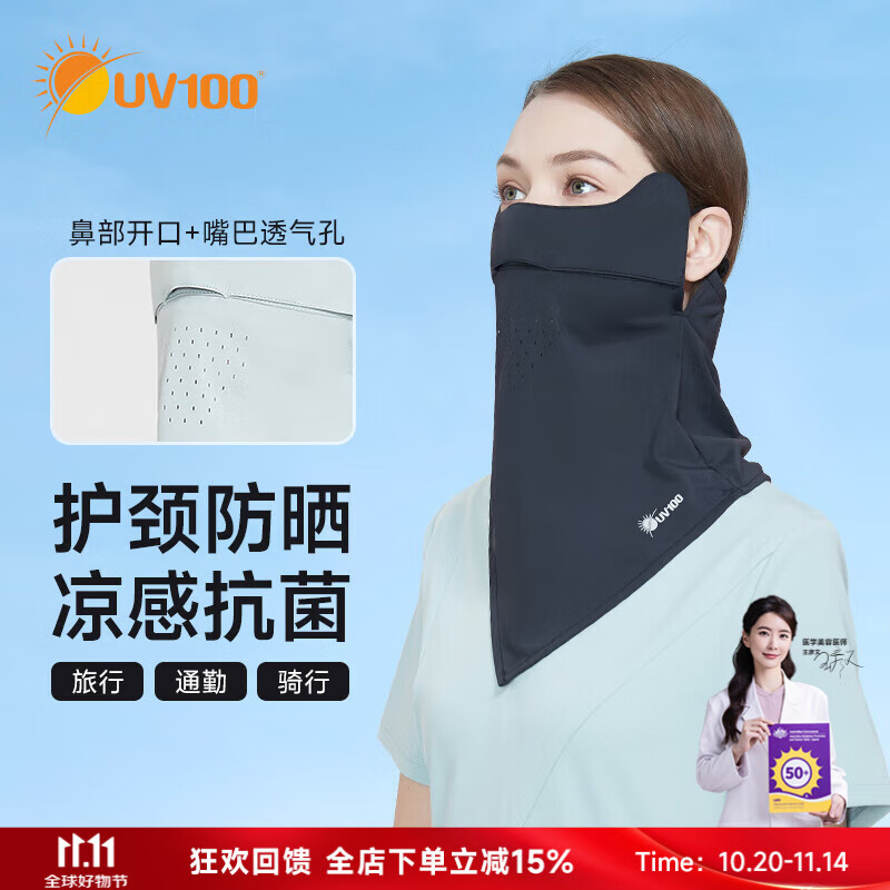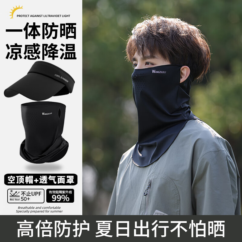 UV100防晒面罩男女春夏遮全脸护颈防紫外线透气护眼角口罩23417暗夜黑
