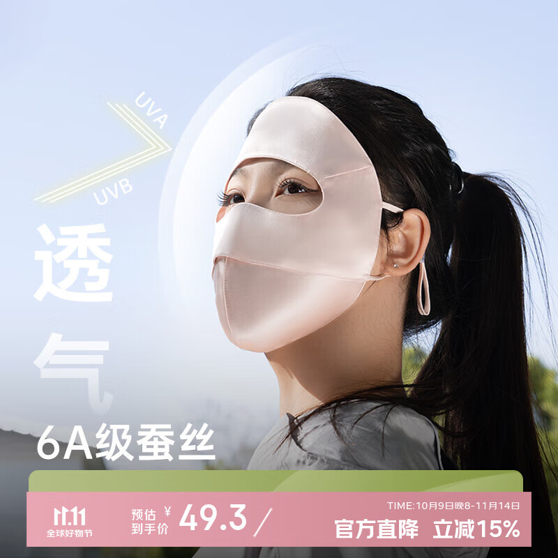 桑尚真丝面罩秋冬季遮全脸防风保暖脸基尼防晒口罩防紫外线 柔粉雾