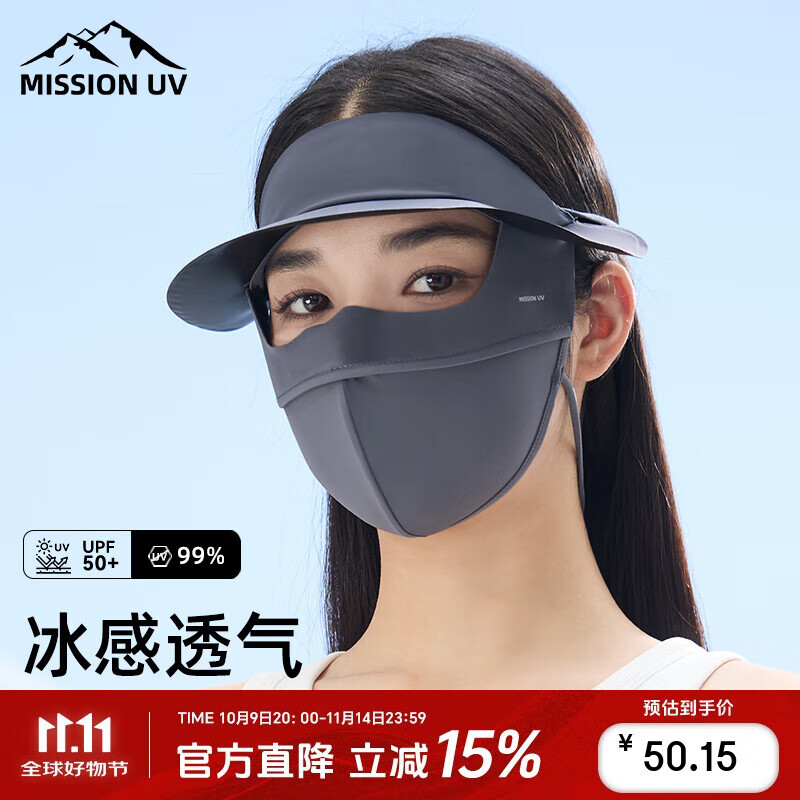 MISSION UV冰丝防晒面罩脸基尼女夏季防紫外线遮阳开车骑行透气全脸防晒口罩