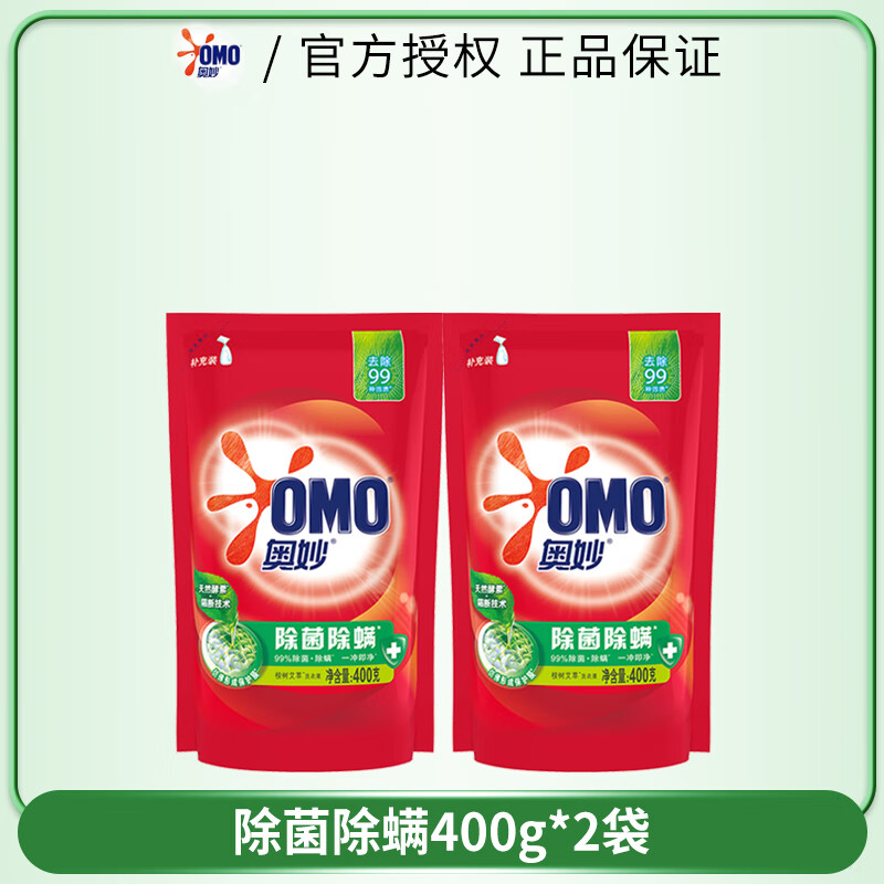 奥妙(OMO)整箱批家用实惠装持久留香除菌除螨补充袋装 400g 1袋*除菌除螨洗衣液