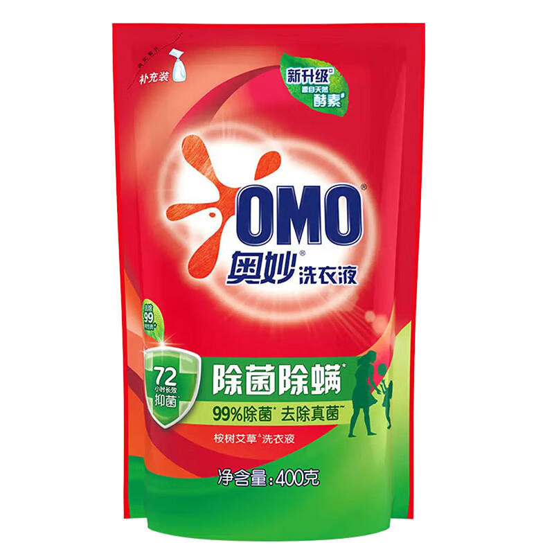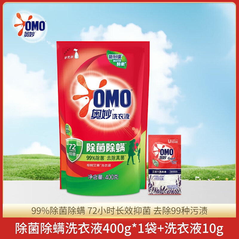 奥妙OMO洗衣液整箱批家用实惠装持久留香除菌除螨补充袋装 除菌除螨洗衣液400g 1袋