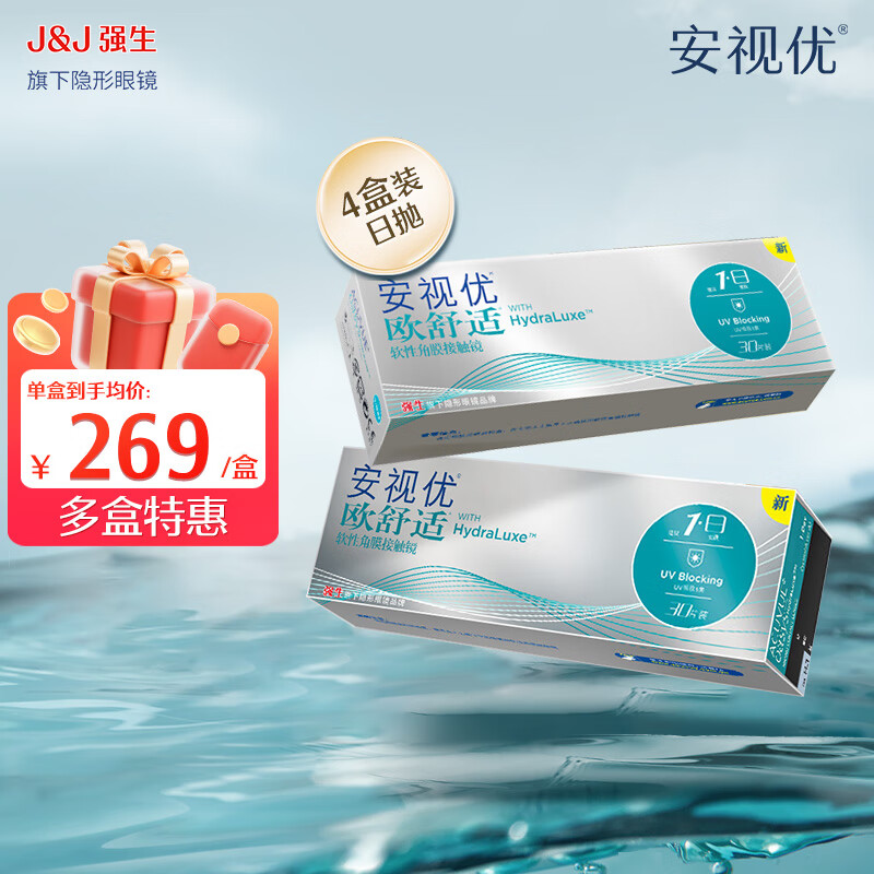 强生安视优【多盒装】隐形眼镜透明隐形眼镜欧舒适 硅水凝胶30片 欧舒适日抛30片*4盒装 700度