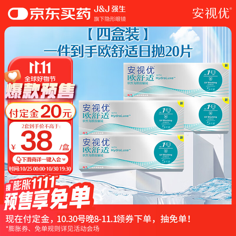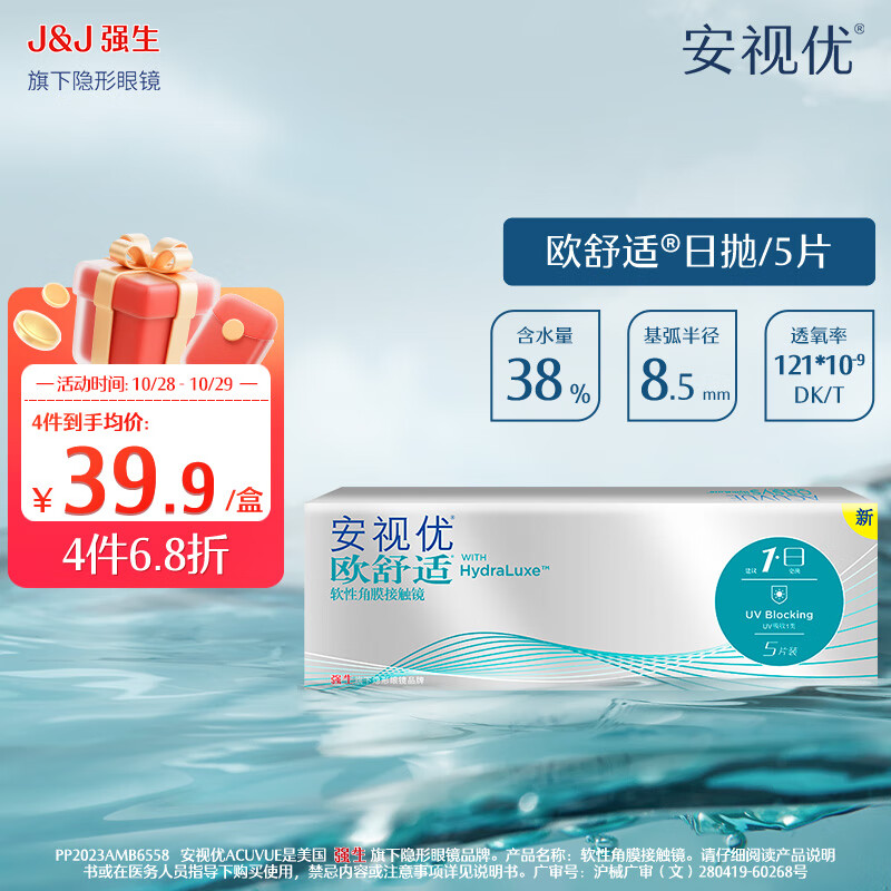 强生安视优小泪片 欧舒适 硅水凝胶 透明隐形眼镜 黑五 欧舒适日抛5片 400度