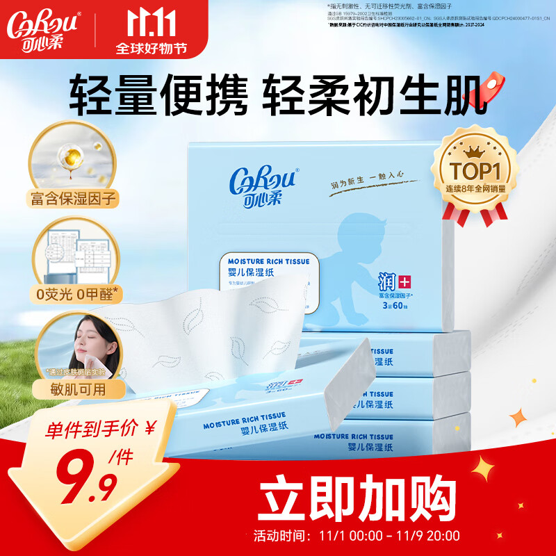 可心柔婴童乳霜纸3层60抽5包婴儿纸柔润保湿