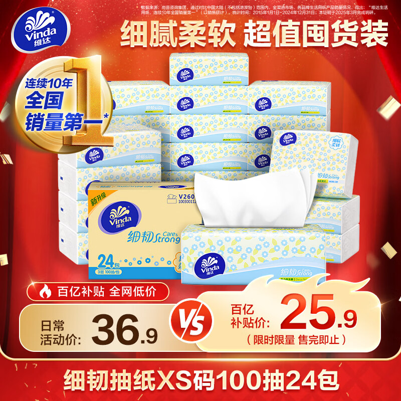 【孙颖莎推荐】棉韧3层100抽*24包S码 亲肤无刺激纸巾 AB混发