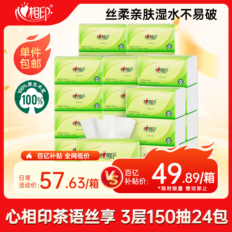 面巾纸茶语丝享 3层150抽*24包真S码 纸巾(整箱销售)