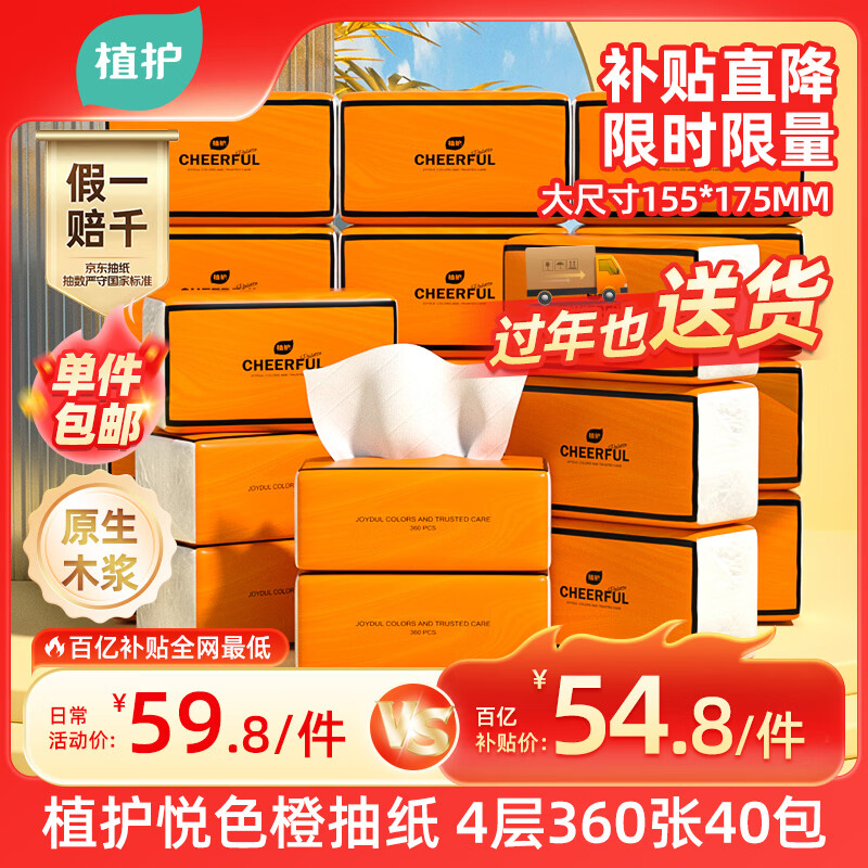4层360张*40大包纸抽整箱批发悦色橙餐巾纸卫生纸面巾纸