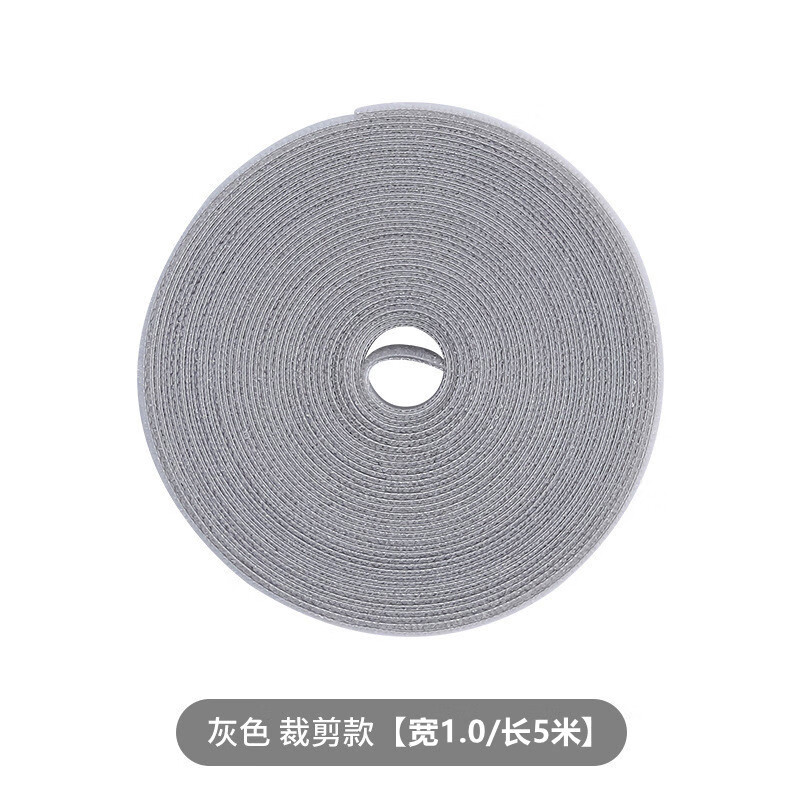 山头林村数据线收纳神器魔术贴扎带理线器电脑束线带桌面电线走线 灰色裁剪款1卷5米