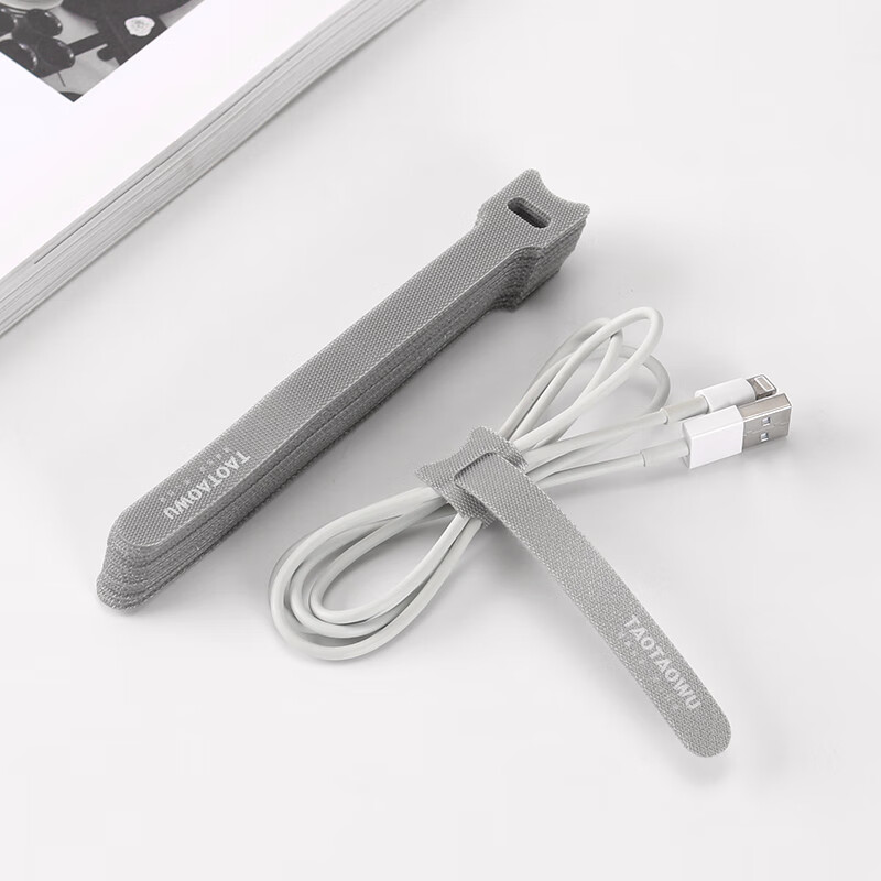 20条电线魔术贴理线带数据线收纳整理电源线捆绑带扎带缠绕绑线带 灰色20条
