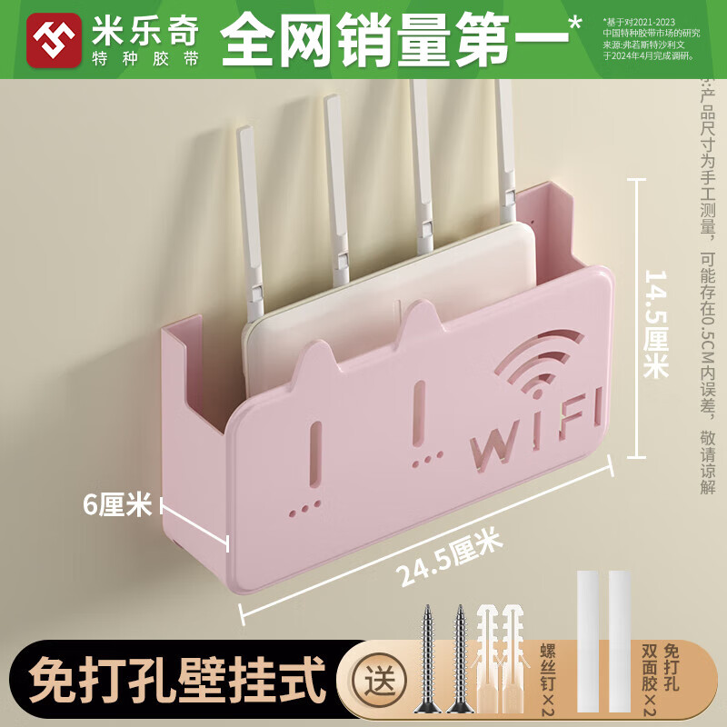 米乐奇桌面魔术贴理线器免裁剪数据线整理收纳魔术贴扎带集线器绕线器 路由器收纳盒【粉色1个装】