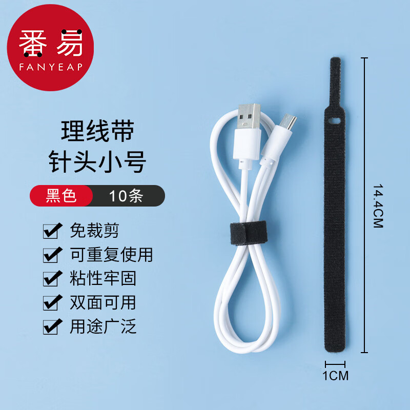番易新款新款理线器BB1S65分线整理魔术贴数据线收纳自粘扎 黑色针头小号10条