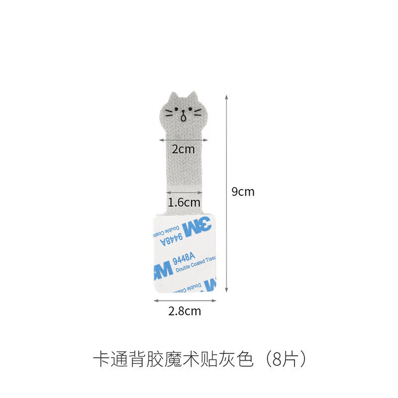 接运猫数据线理线器魔术贴扎带收纳家用电线束线走线固定器 卡通背胶魔术贴灰色8片
