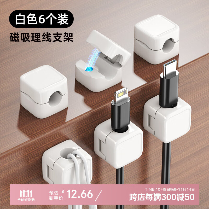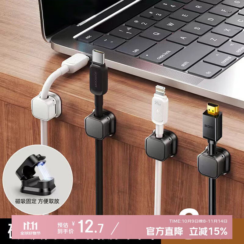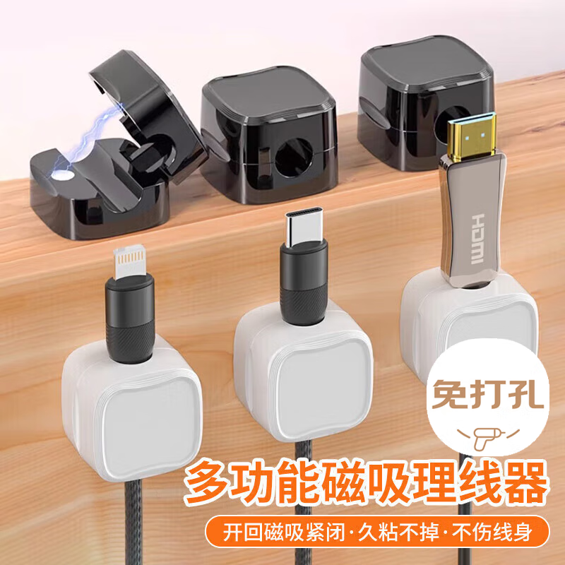 侑家良品磁吸理线器数据线收纳手机充电线固定器桌面免打孔线卡子扣自粘