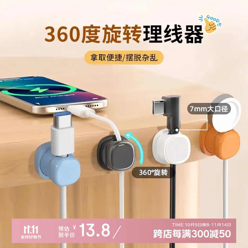 默然诺尔数据线收纳理线器桌面充电线固定集线桌下卡扣绕线收线扎带束整理