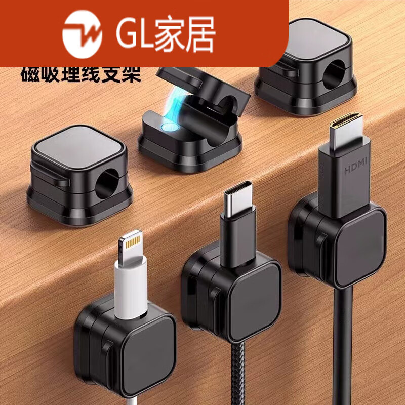 施韵令磁吸理线器数据线收纳手机线强磁固定器通用桌面磁力支架走线卡扣 磁吸理线器随机色1个装