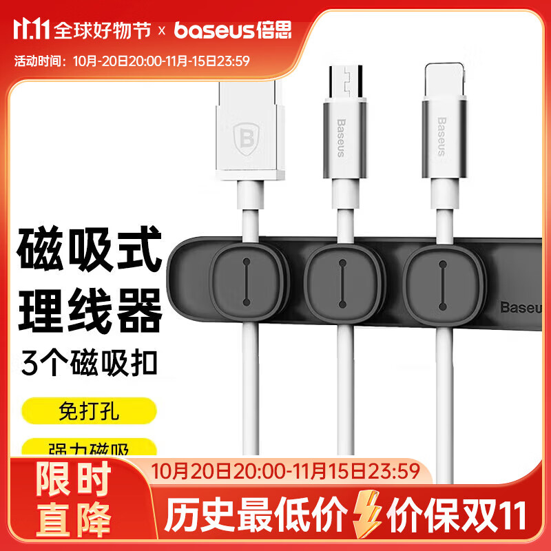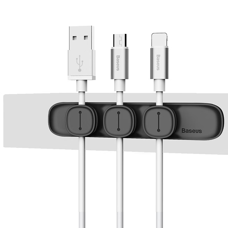 倍思 桌面理线器 数据线磁吸固定理线器收纳整理神器电脑网线免钉绕线卡扣夹子束线器 黑色