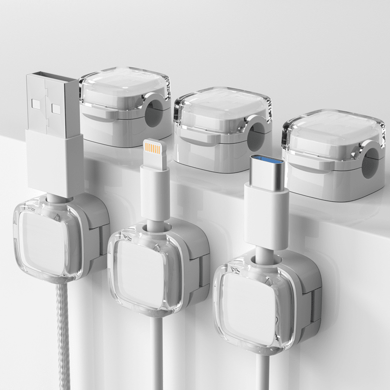 花乐集磁吸桌面理线器数据线收纳床头充电线固定器网线夹子墙面整理卡扣 透明白【6个装】