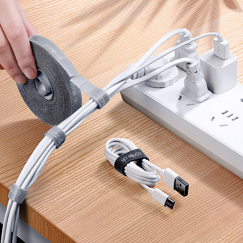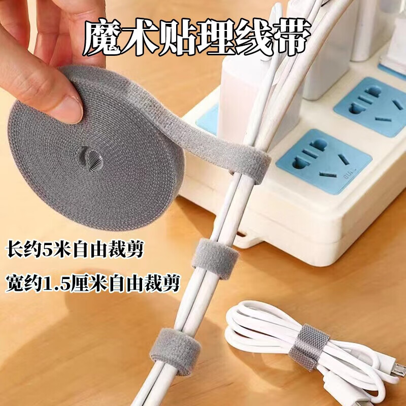 皓梵洁魔术贴扎带理线器数据线收纳神器桌面充电线整理自粘绑带束线带 【电源线魔术贴】自由裁剪 5米