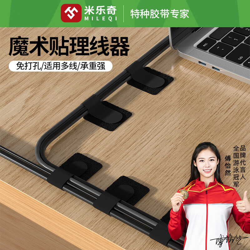 米乐奇魔术贴理线器自粘式绕线器桌下隐形走线神器数据线收纳扎带 【魔术贴理线器】黑色10个装