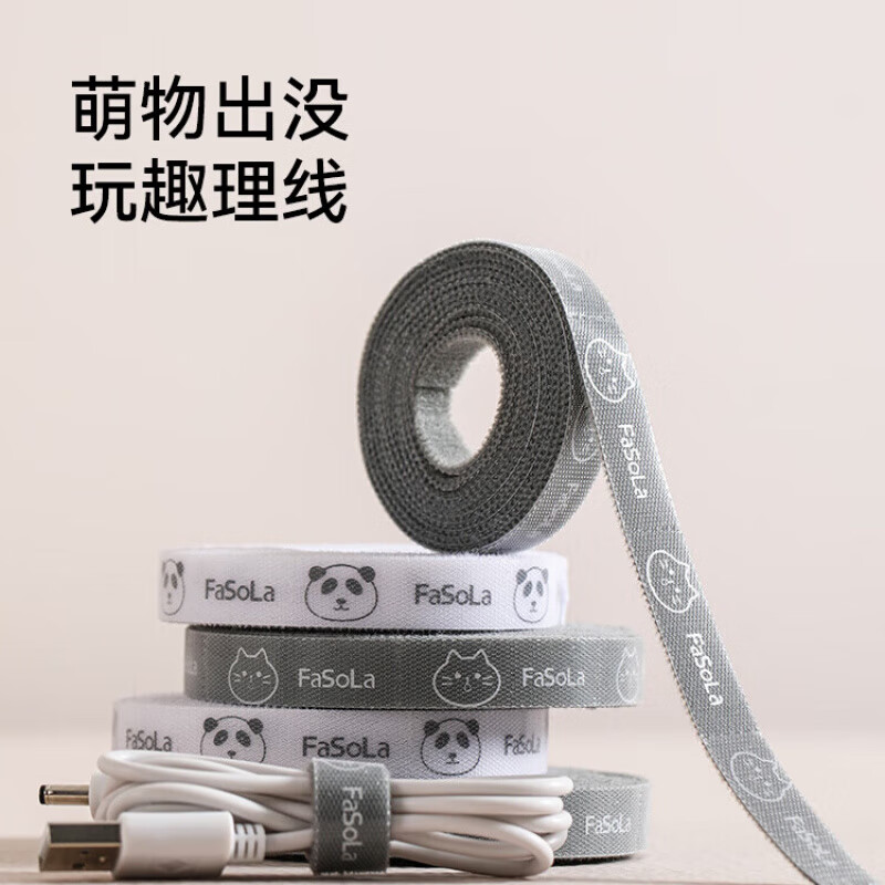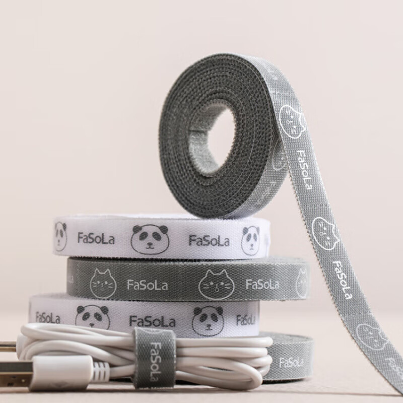 MPPMCKFaSoLa数据线收纳魔术贴捆绑带扎带神器电线线路整理固定器理线器 卡通可撕扎带 - 白色(5米)+ 灰色(5米)