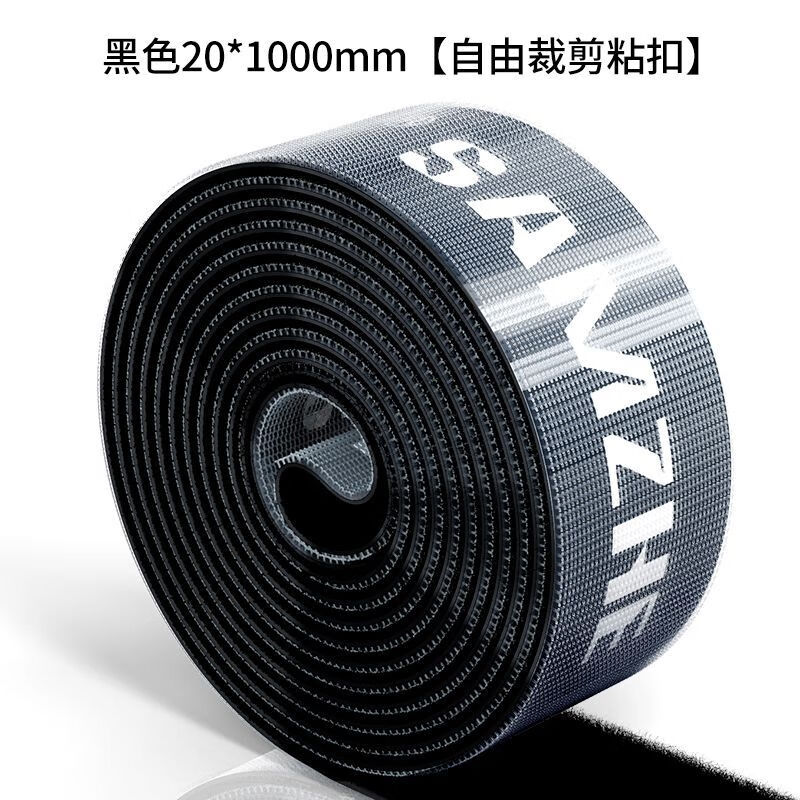 山泽(SAMZHE)理线器带魔术贴集数据线收纳神器电脑电源线整理捆绑束线扎带 黑色2cm*1米【自由裁剪粘扣】