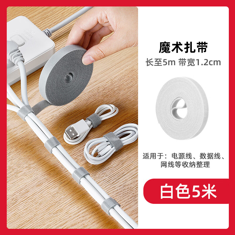 电脑电线固定整理束线理线 白色5米1卷装