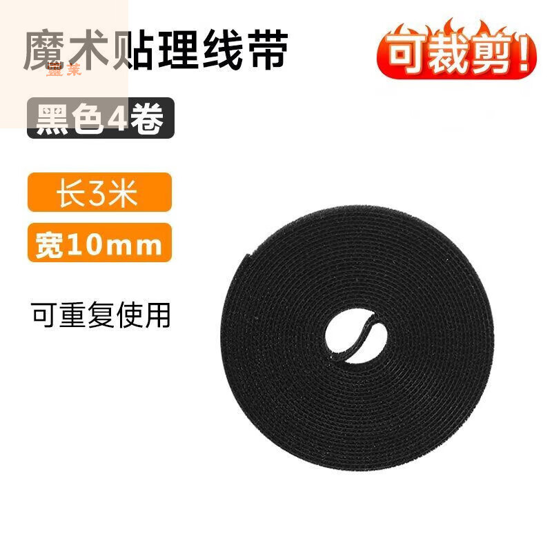 电脑束线桌面电线走线固定绑带 自由裁剪理线魔术贴【黑色】12米【四卷装】