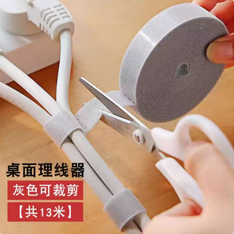 魔术贴绑带数据线收纳神器扎带理线器电脑束线带桌面电线走线固定 灰色【共13米】可裁剪
