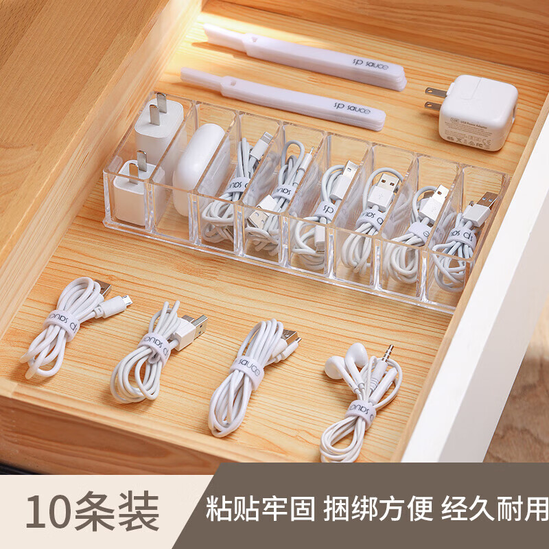 山头林村数据线收纳神器桌面理线器电脑束线魔术贴扎带电线网路线走线固定 升级加强-白色背胶魔术贴扎带[10