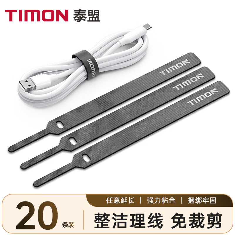 泰盟(TIMON)尼龙魔术贴扎带 针型电脑理线带桌面线缆固定收纳理线器扎线带捆线带 20根装