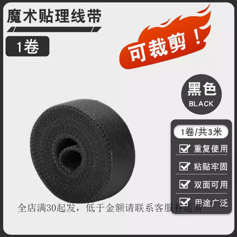 数据线收纳神器魔术贴 数据线收纳神器魔术贴扎带理线器电脑束的 3米黑色12毫米宽