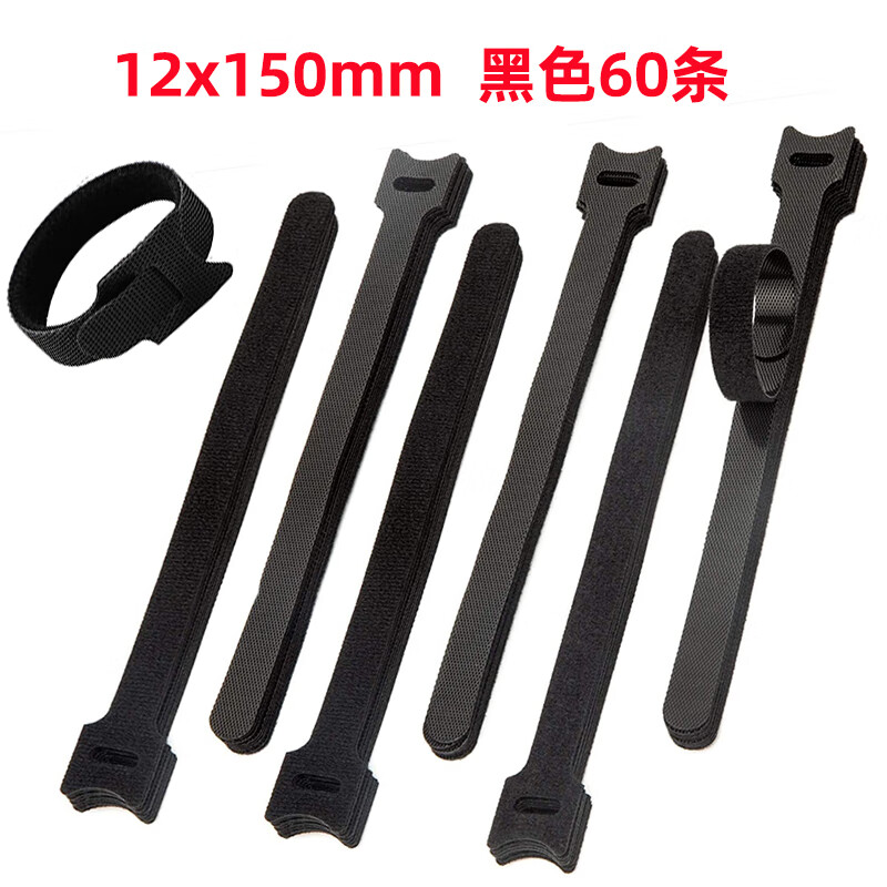 数据线收束魔术贴魔术贴扎带数据线充电线耳机理线器绕线器收纳便 12x150mm黑色60条