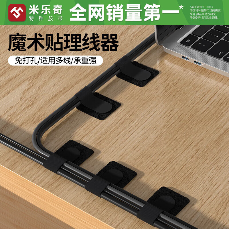 桌面魔术贴理线器免裁剪数据线整理收纳魔术贴扎带集线器绕线器 魔术贴扎带[黑色10个装]