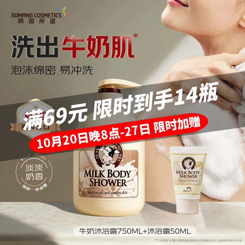 韩国原装进口沐浴乳持久留香清洁保湿滋润嫩滑肌肤 【爆款800ml】牛奶