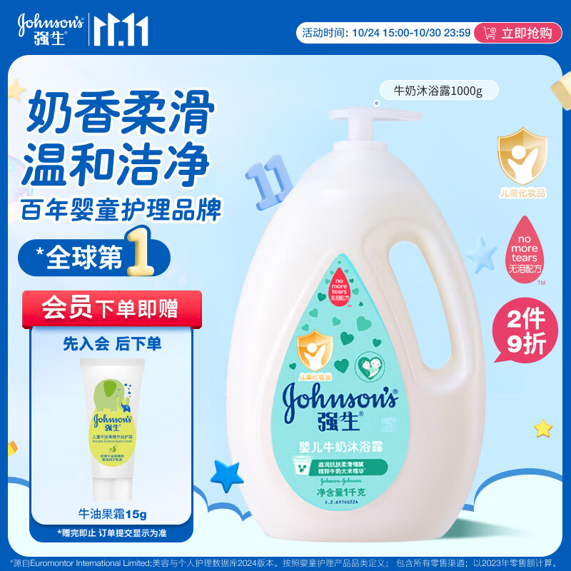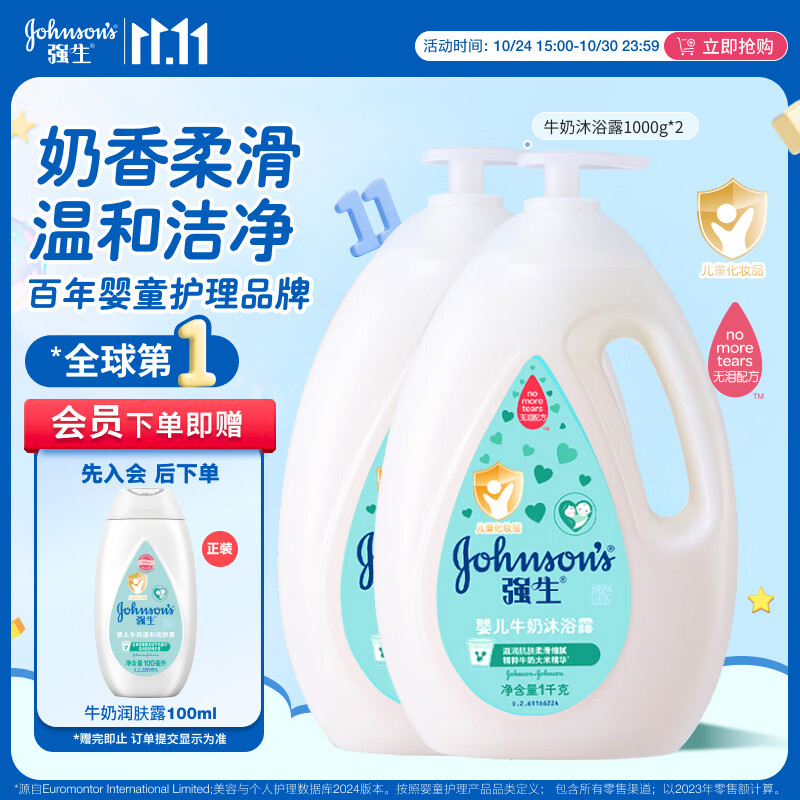 强生(Johnson)婴儿牛奶沐浴露1kg*2 宝宝儿童青少年沐浴保湿乳液全家可用
