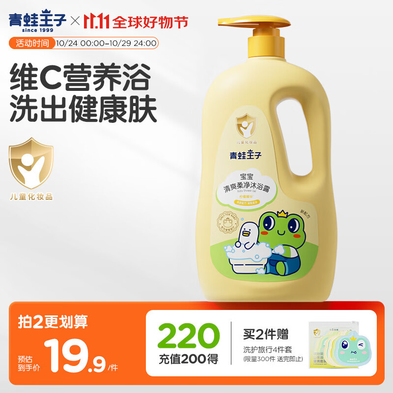 青蛙王子儿童沐浴露1.18L 温和无刺激 婴幼儿宝宝可用 天然柠檬维C精华