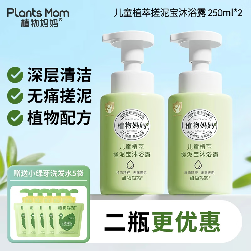 植物妈妈儿童搓泥宝沐浴露搓泥神器深层温和清洁6-12岁
