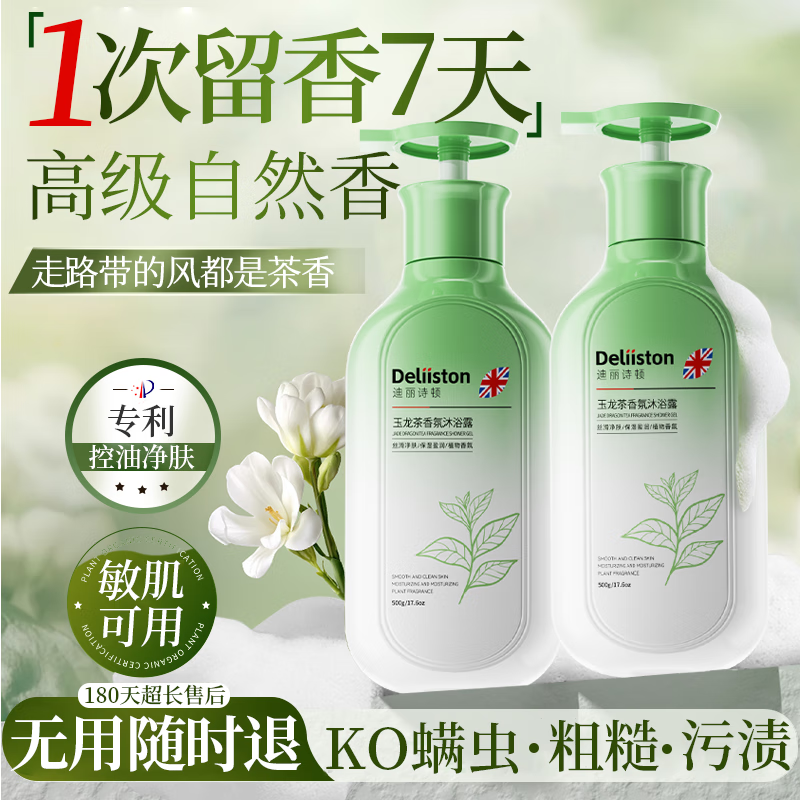 迪丽诗顿Deliiston玉龙茶香氛沐浴露男女士持久留香72小时香体香水型沐浴乳家庭装 【体验装】除螨嫩肤持久留香