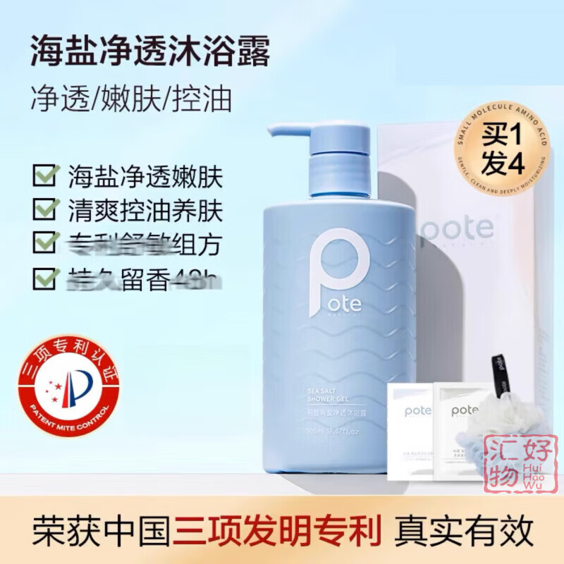 柏缇海盐除螨沐浴露 475ml 香水型持久留香香体桃子男女氨基酸72小时 海盐净透沐浴露 475ml